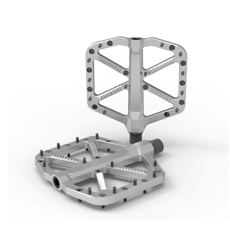 El pedal 5DEV Trail/Enduro es el más agresivo y ligero de toda la línea. Con solo 343 g, su diseño de perfil bajo, 24 pines estratégicamente ubicados y mecanizado de 5 ejes, lo convierten en la opción ideal para ciclistas avanzados que buscan tracción y rendimiento absolutos en un pedal plano.